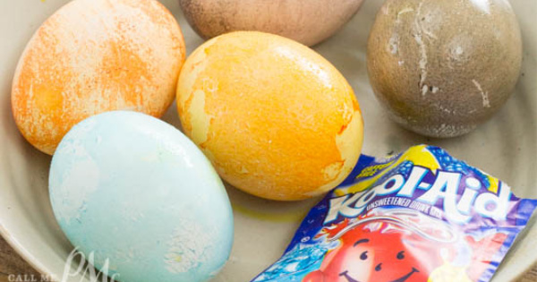 I jostled my eggs around with a spoon every so often while they soaked so they didnt set on any one side for too long. Get creative while dyeing Easter eggs with Kool Aid packets by adding some embellishments. Take 1 package of kool-aid and desolve with 23 cup of water some have used 1 cup of water.